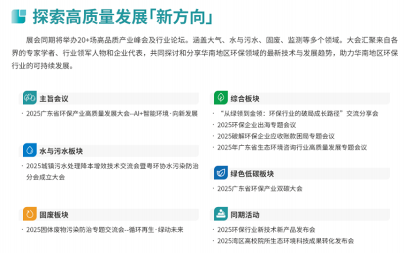 本届中国环博会广州展在废水处理方面将聚焦废水处理创新技术,高浓度有机废水预处理(微电解、高级氧化等),生化处理强化技术(MBR、MBBR等),废水近零排放及回用系统;
